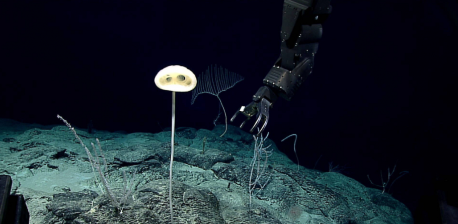 A glass sponge known as ''Advhena magnifica'' in the Pacific Ocean being collected in 2016, at a depth of 2,000 meters. Picture by the US Office of Ocean Exploration and Research.