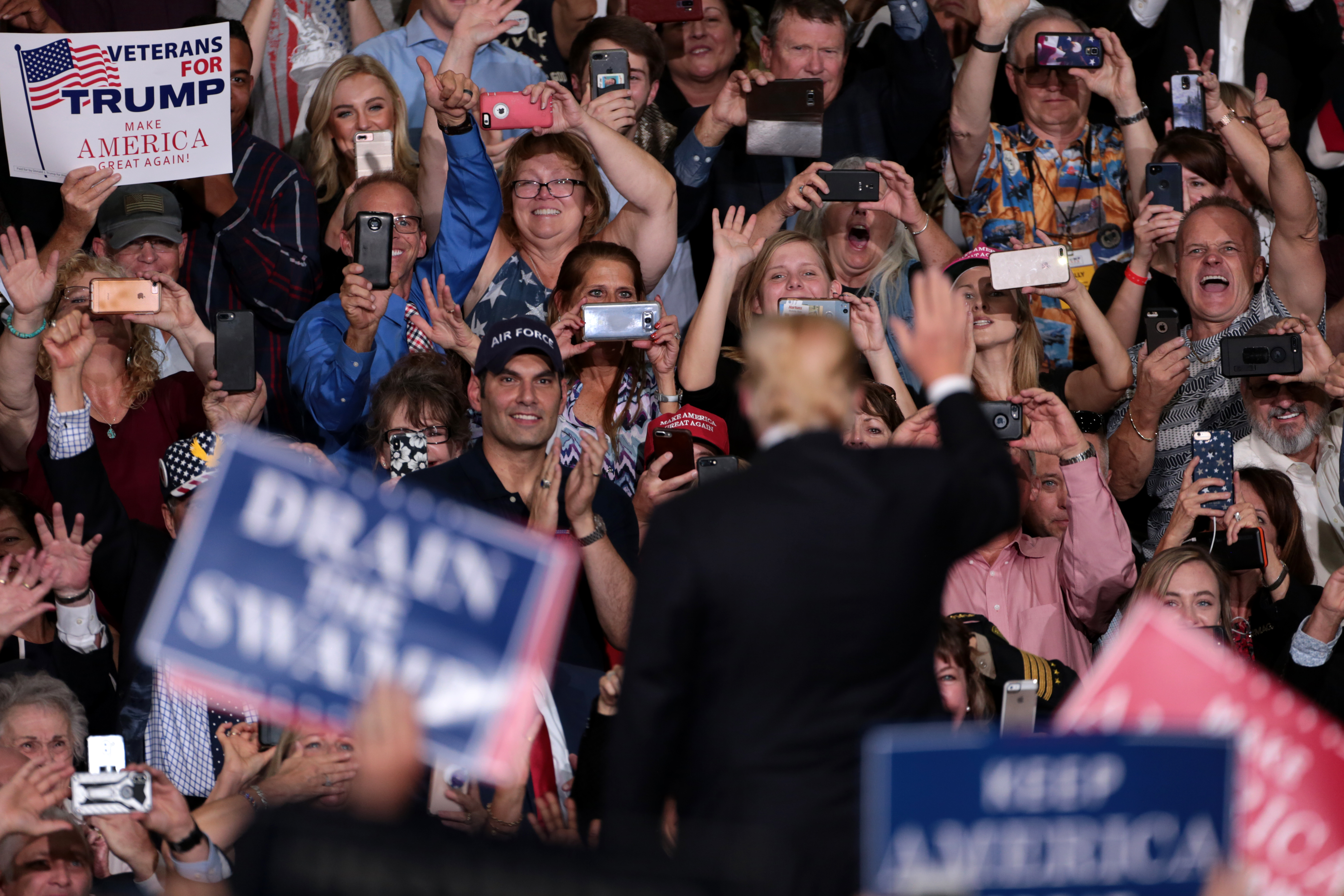 President of the United States Donald Trump speaking with supporters at a Make America Great Again campaign rally at International Air Response Hangar at Phoenix-Mesa Gateway Airport in Mesa, Arizona. Please attribute to Gage Skidmore if used elsewhere. |