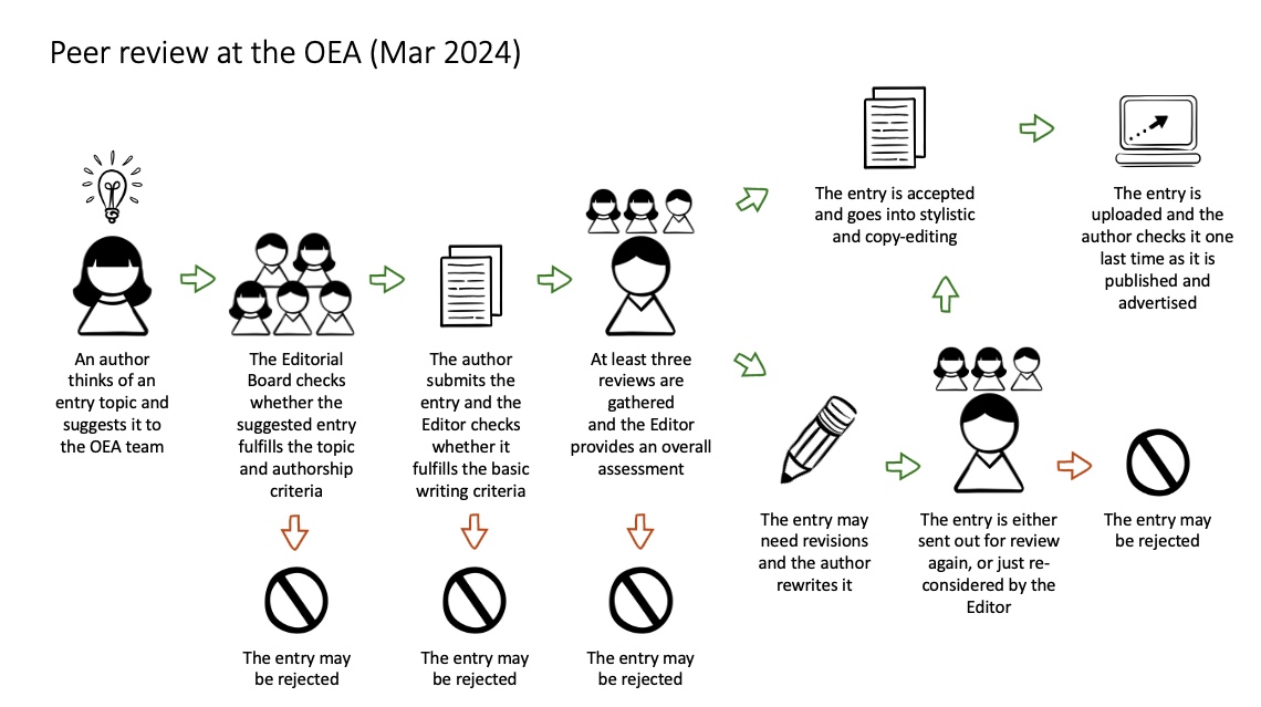 Before writing an entry, please check with us at editors[at]anthroencyclopedia.com to make sure the topic is not currently in production and to ensure you fulfil our author criteria. OEA authors should hold a PhD in Anthropology (or a very closely related discipline); they need to have demonstrated expertise of the anthropological literature on the topic in question; and they should have previously published in peer-reviewed journals (preferably on the topic in question). Even when you have received permission to author an entry, this does not mean that the entry will be accepted, as acceptance depends strictly on peer-review.