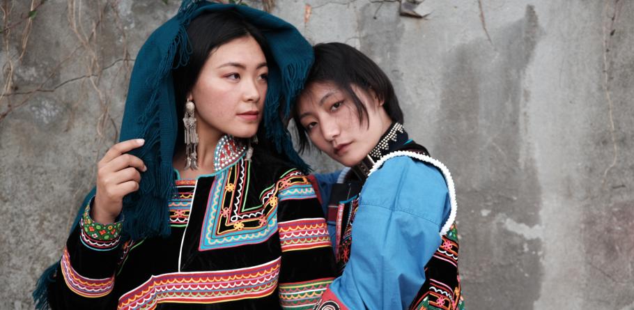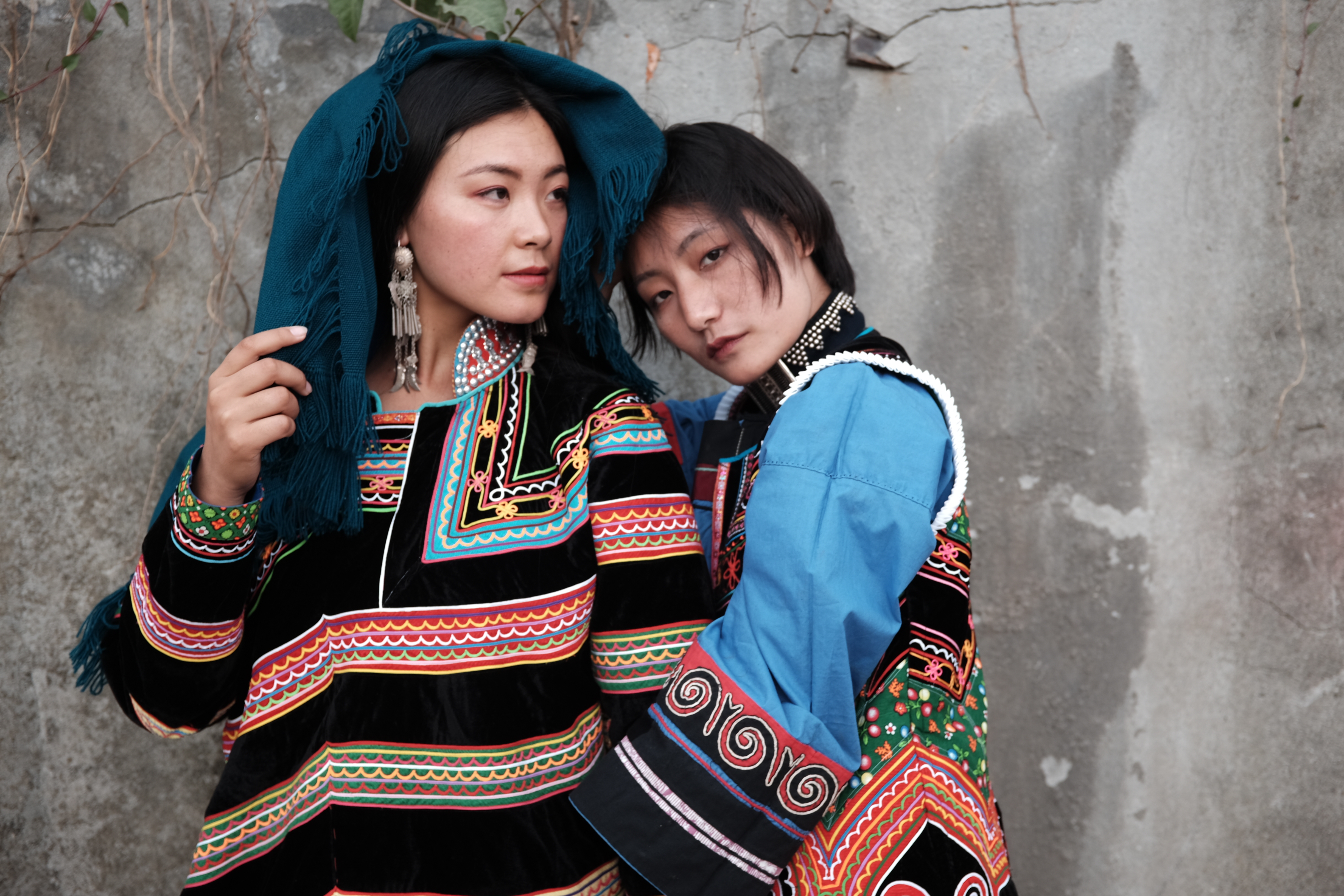 Nuosu college students pose in vintage clothing, creating a retro aesthetic. Chengdu, China. See also Banfill 2020. Photo by Kaitlin Banfill, 2018. Used with permission.